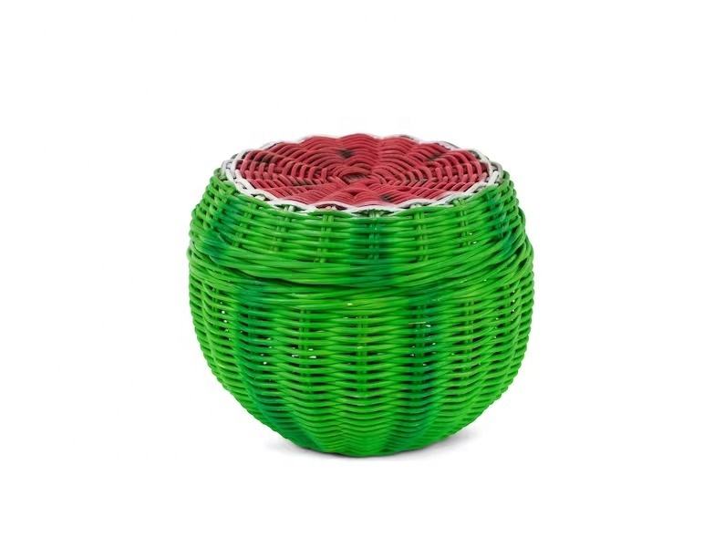 Cesta de Almacenamiento con Tapa, Cesta de Frutas Decorativa de Mimbre Tejido, Organizador de Estantes, Bonito Regalo Hecho a Mano, Arte de Mimbre