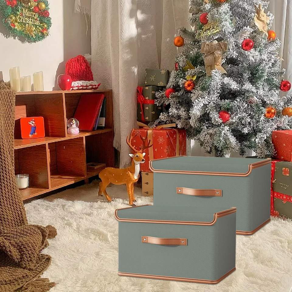 Contenedores de almacenamiento con tapas, caja organizadora de tela con asas, cajas de almacenamiento decorativas con tapas para organizar ropa, manta