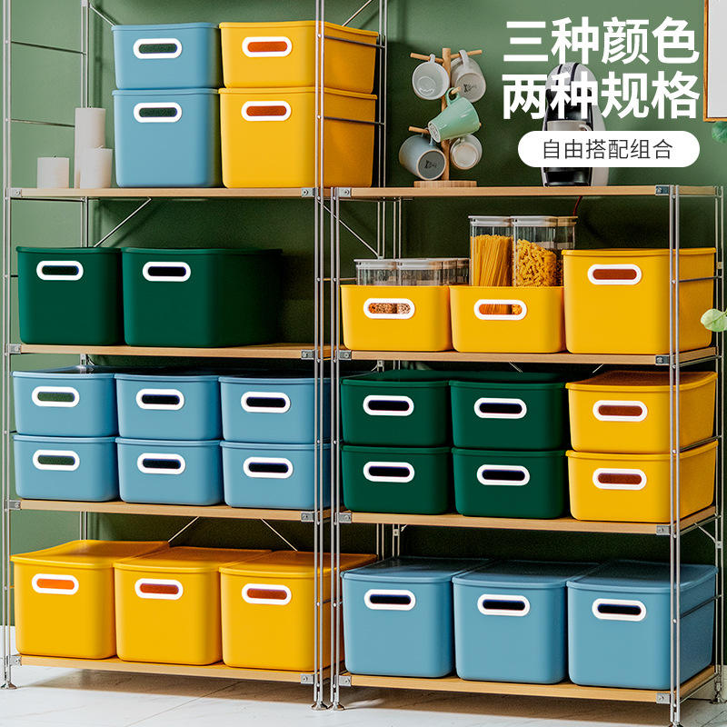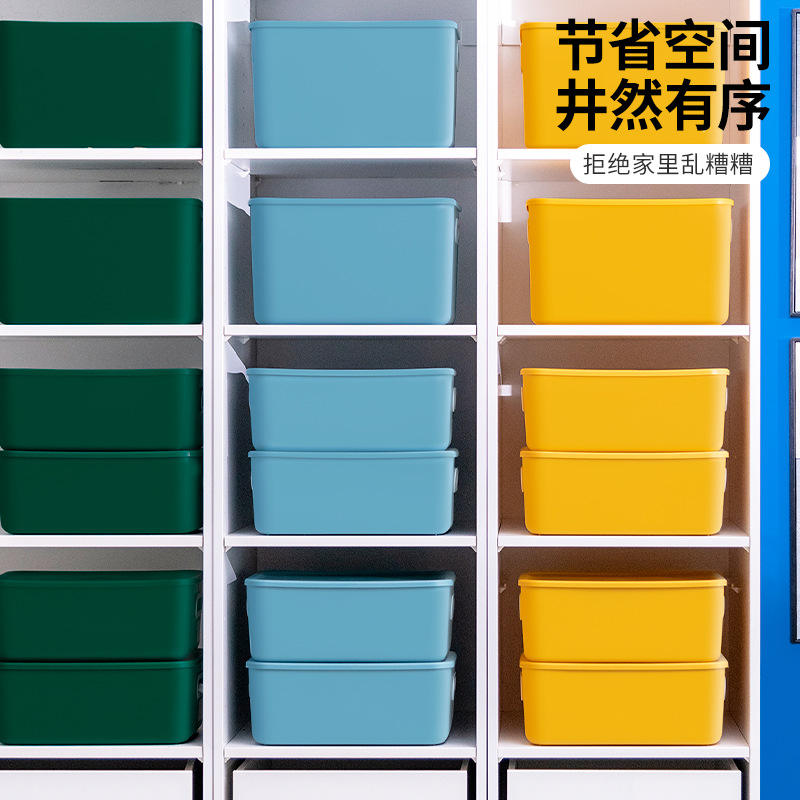 Caja de almacenamiento rectangular de plástico con tapa para escritorio, oficina, cosméticos, aperitivos, ropa interior, organizador 7705, azul, blanco