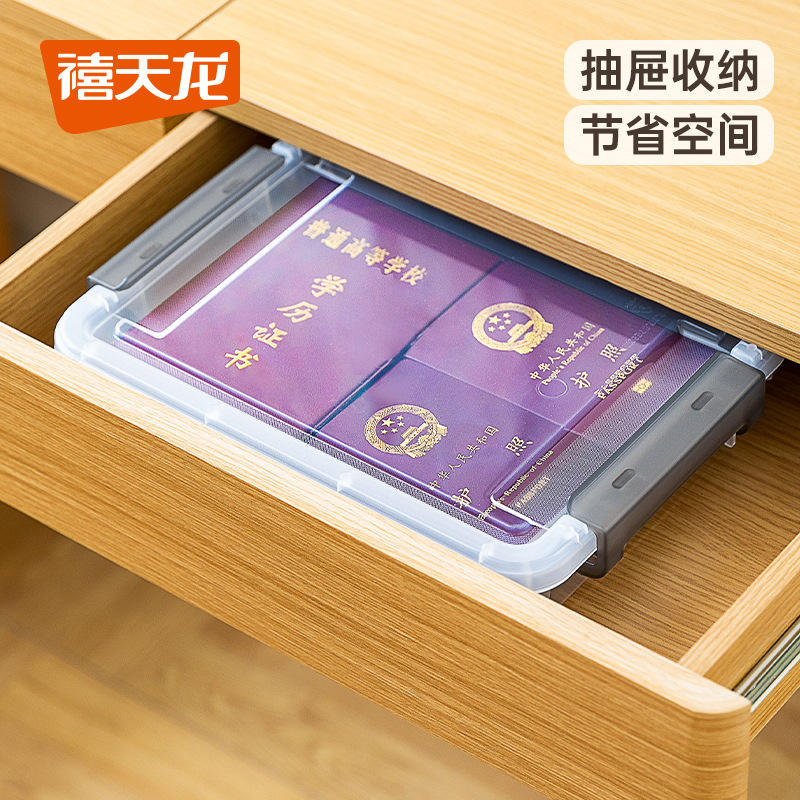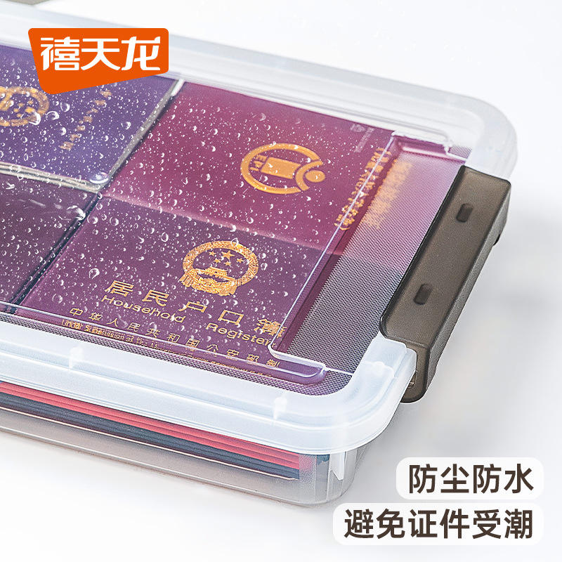 Caja de almacenamiento rectangular transparente blanca con tapa para documentos, organizador de escritorio 6312-6313