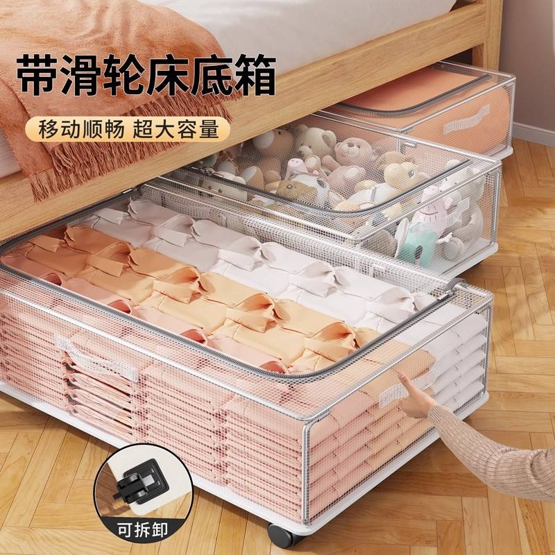 Caja de almacenamiento rectangular para debajo de la cama de 80L-90L con ruedas para ropa y mantas, a prueba de humedad, de gran capacidad