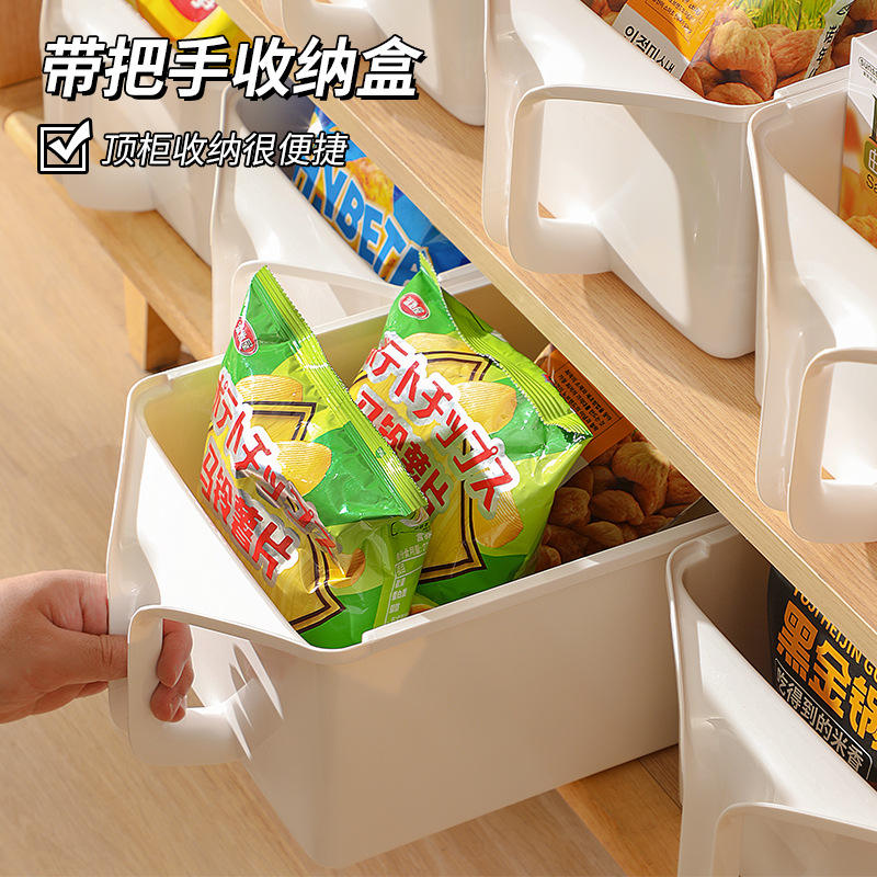 Storage Box With Handle Rectangle White Food Container For Snacks And Miscellaneous Items Shelf Organizer