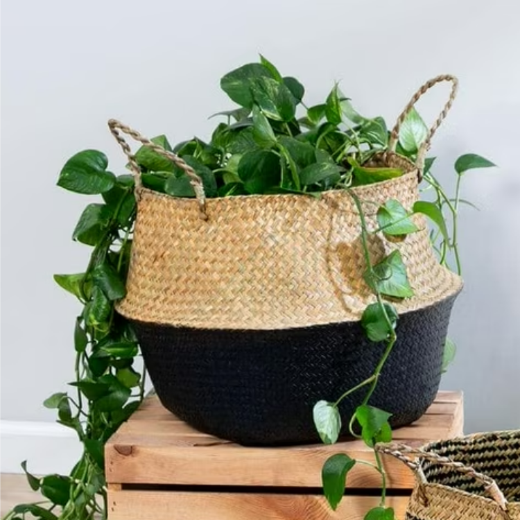 Cestas de Almacenamiento Rústicas de Seagrass con Asas, Ecológicas, Color Personalizado, Hechas a Mano, Multifuncionales para Jardín