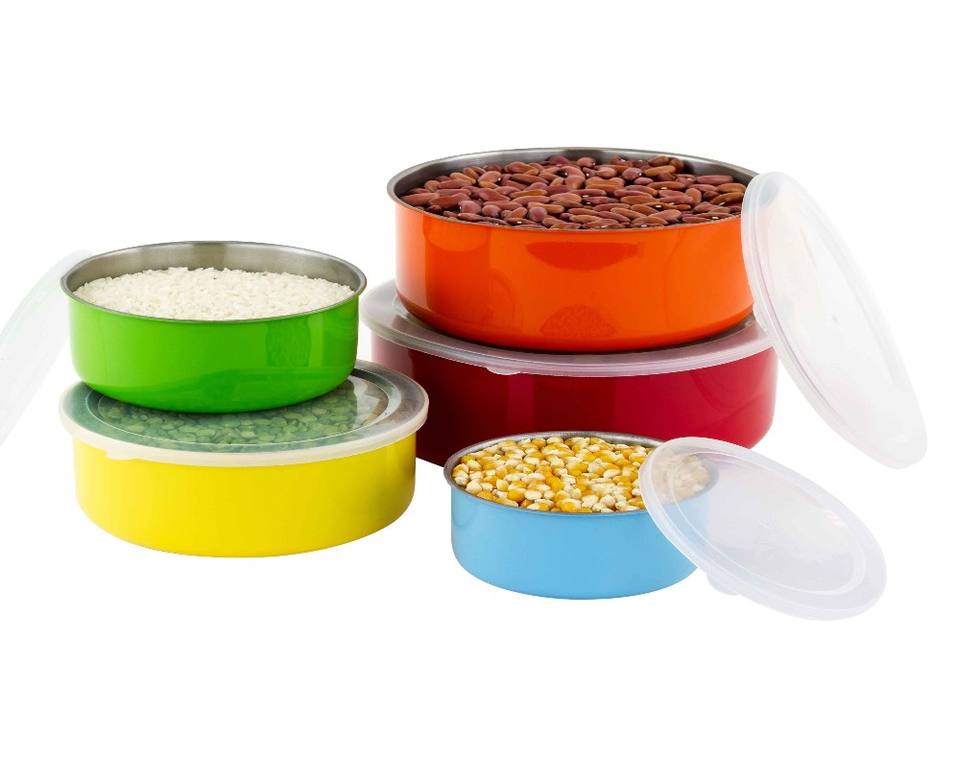 Juego de cuencos redondos de acero inoxidable para cocina, almacenamiento de alimentos, ensalada, con tapa de plástico, precio barato
