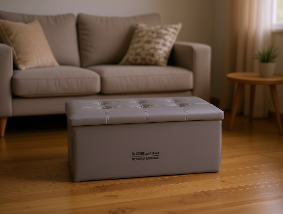 Taburete de Almacenamiento de Cuero Sintético, Diseño Moderno, Mueble de Sala de Estar, Otomana para el Hogar con Función de Almacenamiento