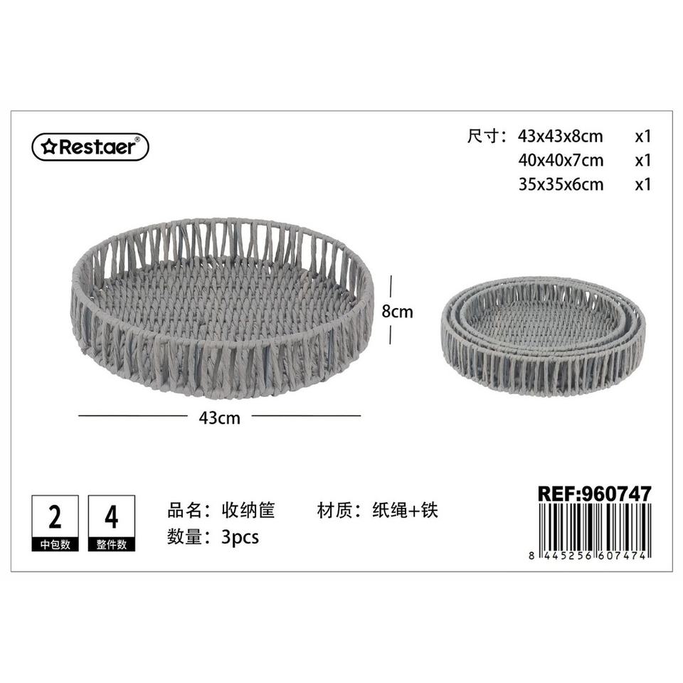 Cesta de almacenamiento 3 piezas 43x43x8, 40x40x7, 35x35x6 cm-Artículos para el hogar