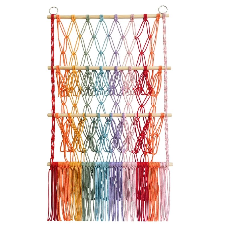 Estante de Almacenamiento, Decoración Sencilla, Decoraciones para Habitación Infantil, Palos de Madera, Red de Almacenamiento de Juguetes de Felpa de 3 Niveles, Estilo Bohemio