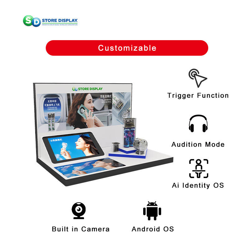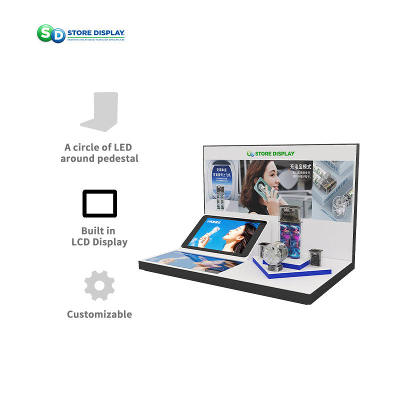 Soporte de exhibición de acrílico LED para mostrador de tienda para productos electrónicos para exhibición de muestra de centro comercial