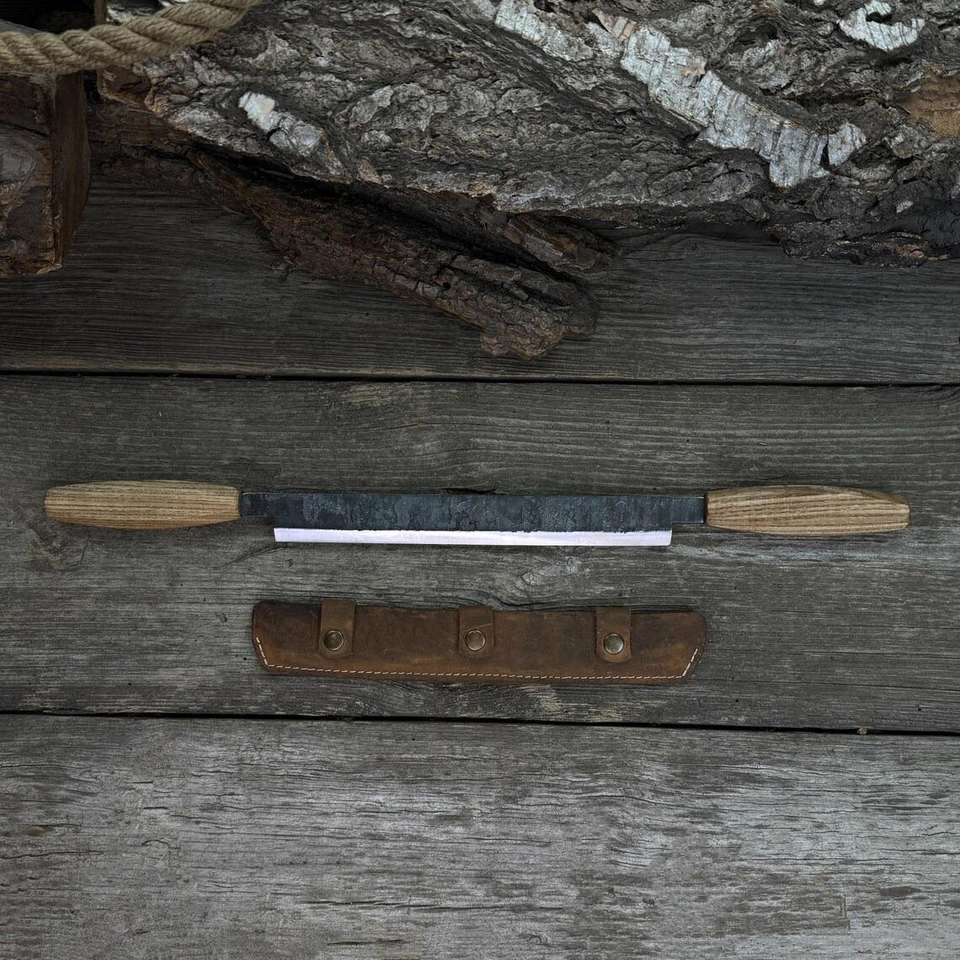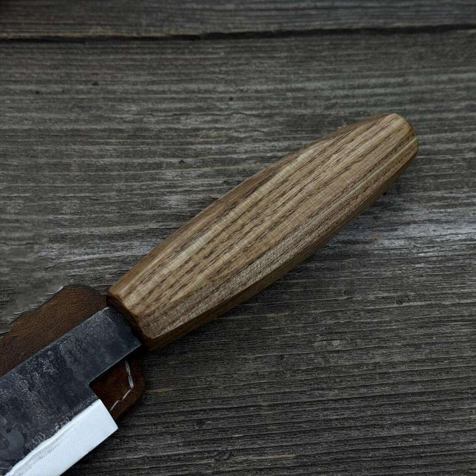 Cuchillo recto hoja afilada de acero al carbono, mango de madera de Fresno, cuchillo de dibujo de vaina de cuero para carpintería