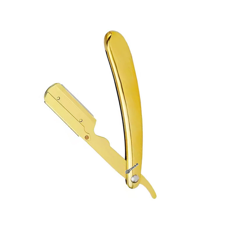 Maquinilla de afeitar de barbero de borde recto Cuchillas de afeitar de un solo borde Peso ligero Shavette Maquinilla de afeitar chapada en oro