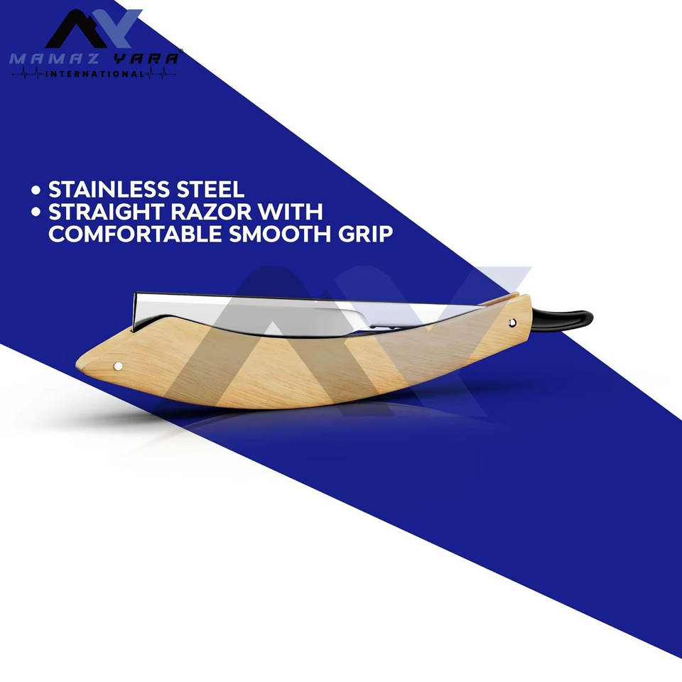 Kit de Navaja de Afeitar Recta con 10 Cuchillas de Doble Filo Reemplazables de Acero Inoxidable, Mango Curvo de Madera para el Cuidado Personal Masculino