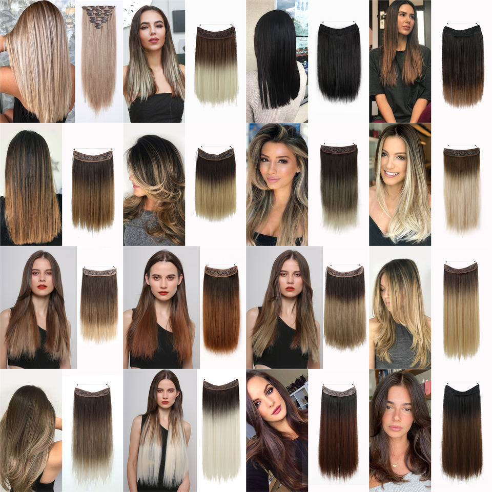 Extensiones de Cabello sintético liso, 24 pulgadas, 120g, cabeza completa rizada, cable Invisible, cadena secreta, sin Clips, extensiones de cabello
