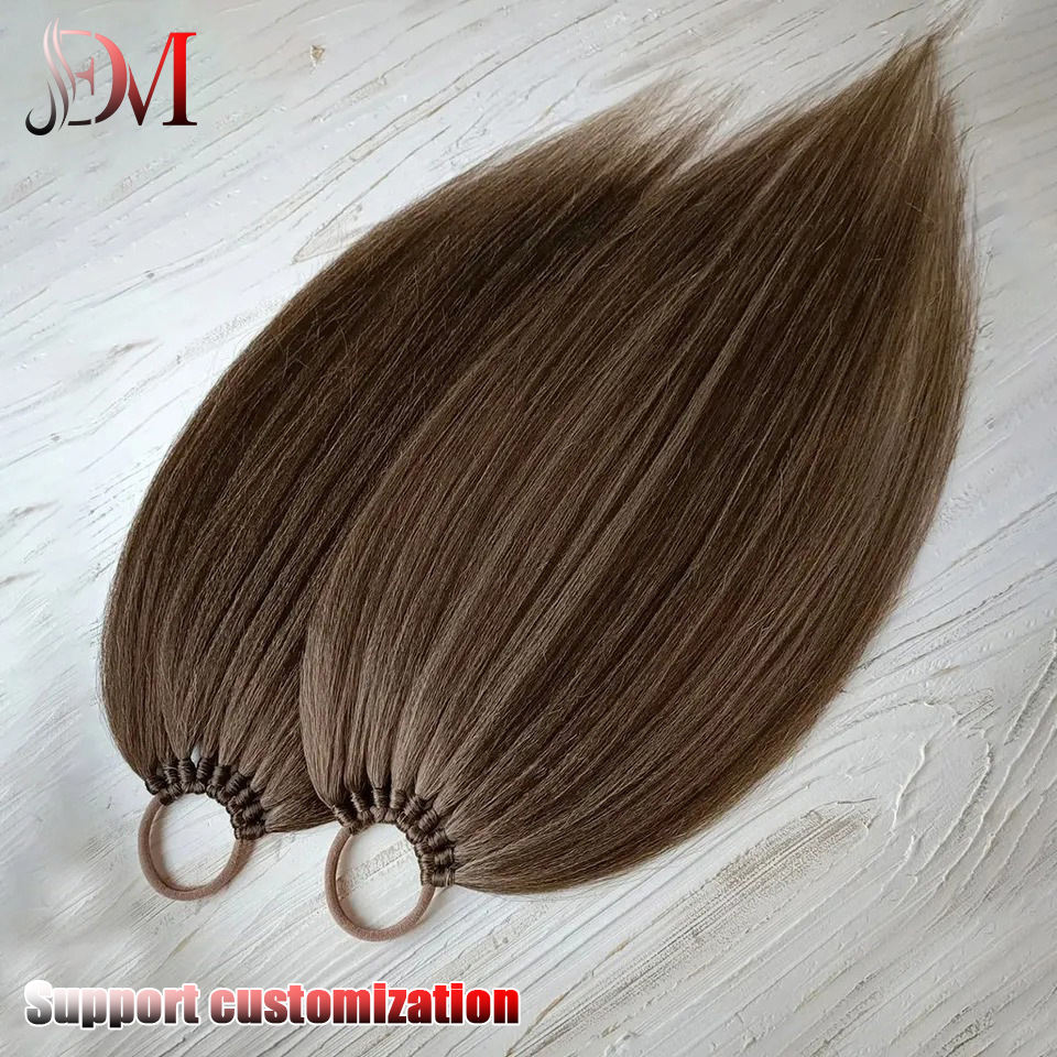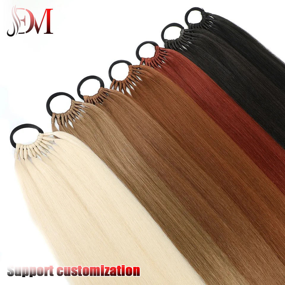 Cola de caballo sintética recta 24 pulgadas hueso recto pelo Natural cola falsa fibra de alta temperatura banda de goma tejida cola de caballo