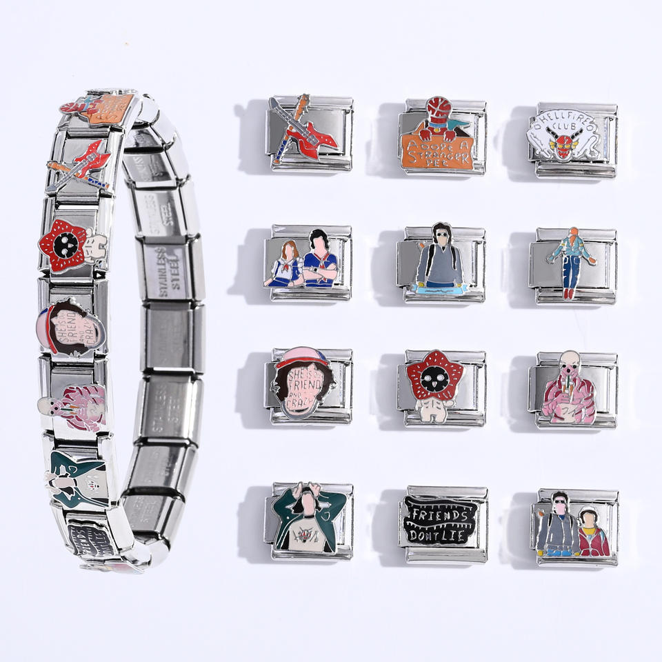 Pulsera Modular de Acero Inoxidable de Stranger Things, Juego de Dijes DIY, Regalo Unisex, Diseño de Dibujos Animados
