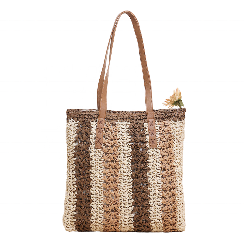 Bolso de Papel Trenzado, Alta Moda, Bolso de Hombro Tejido a Mano para Mujer, Bolso de Playa Natural de Verano, Venta al por Mayor OEM