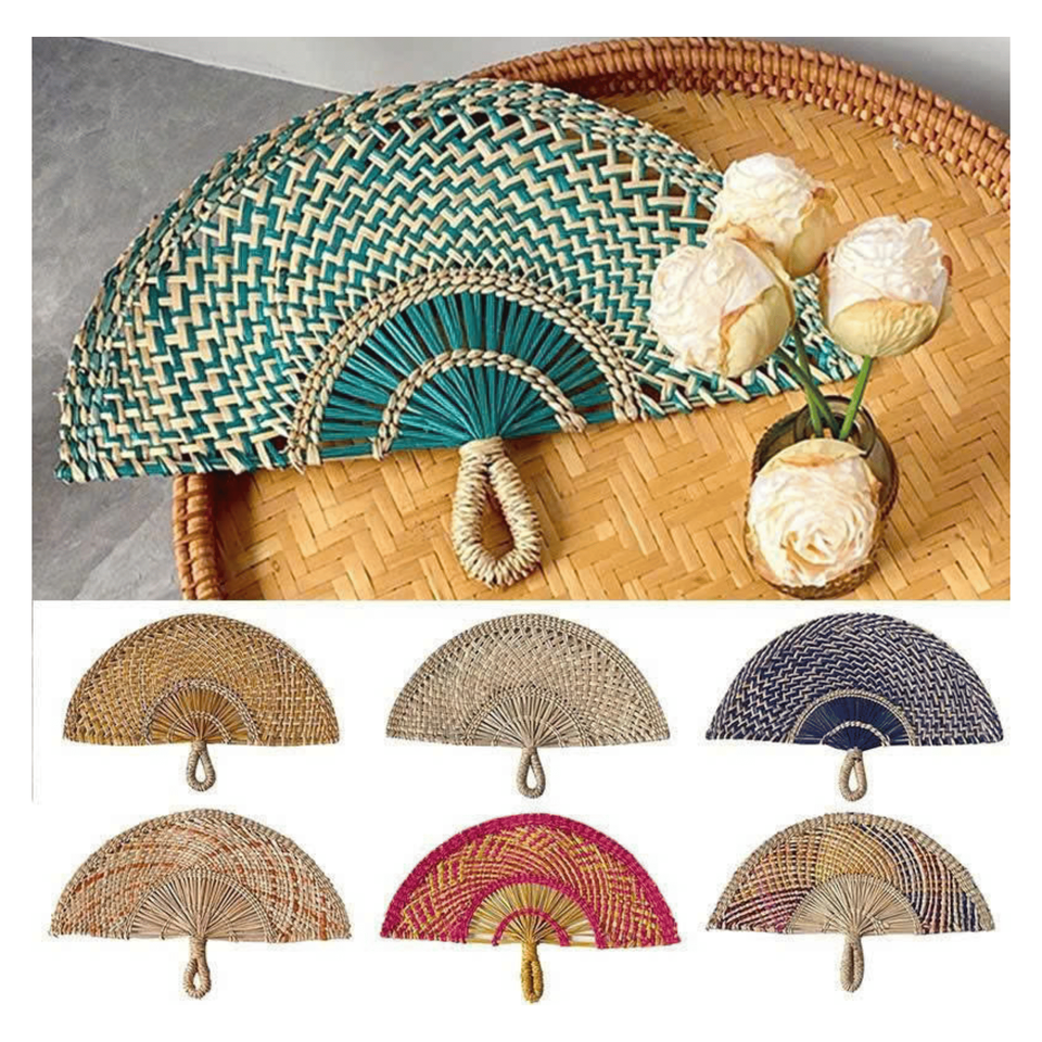 Abanico de Mano de Paja de Mar Tejido a Mano para Eventos de Verano, Recuerdos de Fiesta y Decoración del Hogar, Vietnam
