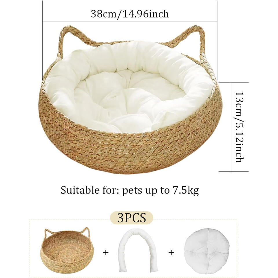 Nombre del producto:Cesta/Cama para Gatos Tejida con Paja