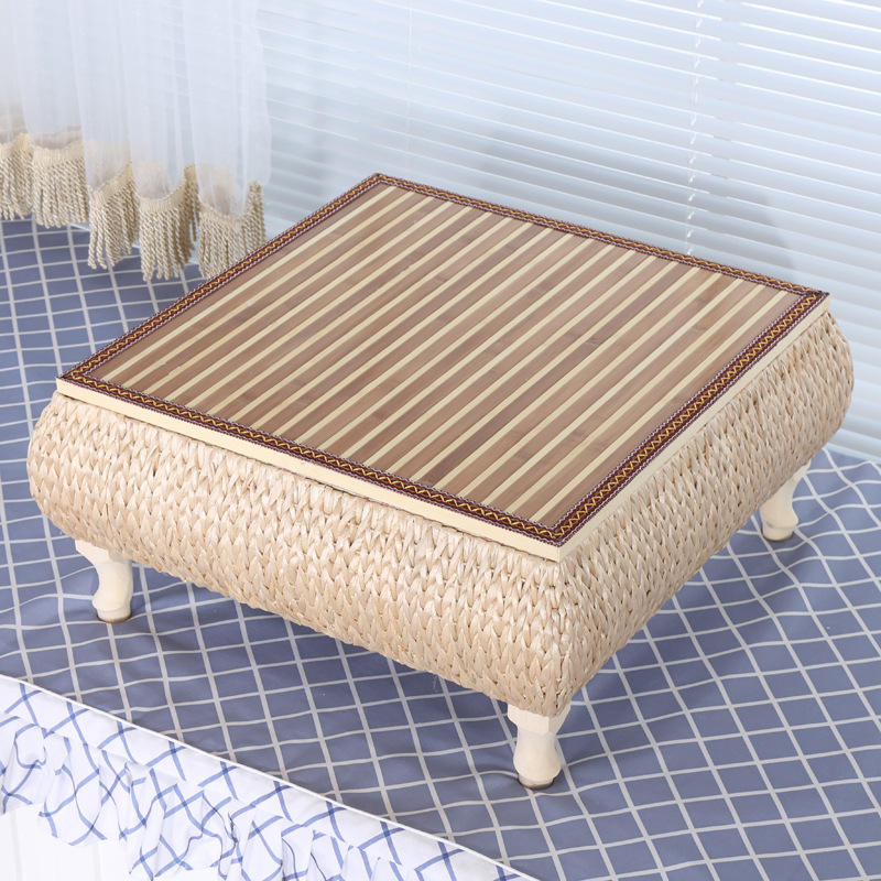 Mesa de centro cuadrada de mimbre con almacenamiento para balcón o uso en tatami