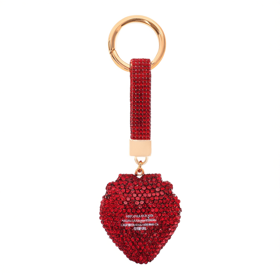 Llavero de fresa con diamantes de imitación rojo con anillo dorado, colgante de moda