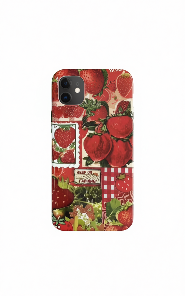 Funda para iPhone con Diseño Rural de Fresa para Sublimación, sin Soporte