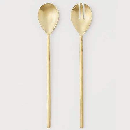 Utensilios modernos y minimalistas de metal para servir ensaladas, ideales para una mesa de comedor minimalista y servicio de buffet.