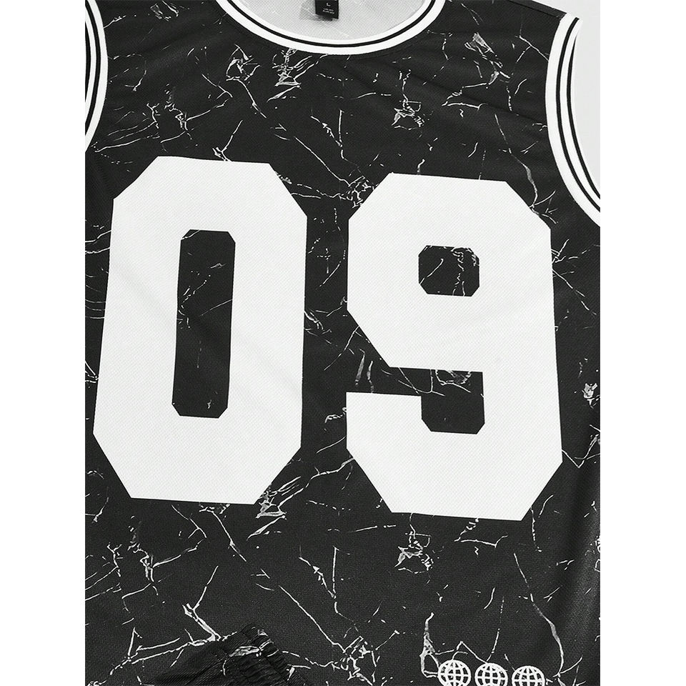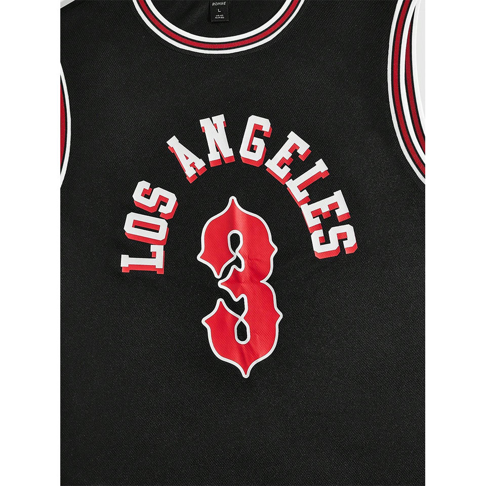 Street Life-Top de cuello redondo sin mangas de bloque de color para hombre con bordes estampados de letras y números y pantalones cortos de cintura elástica