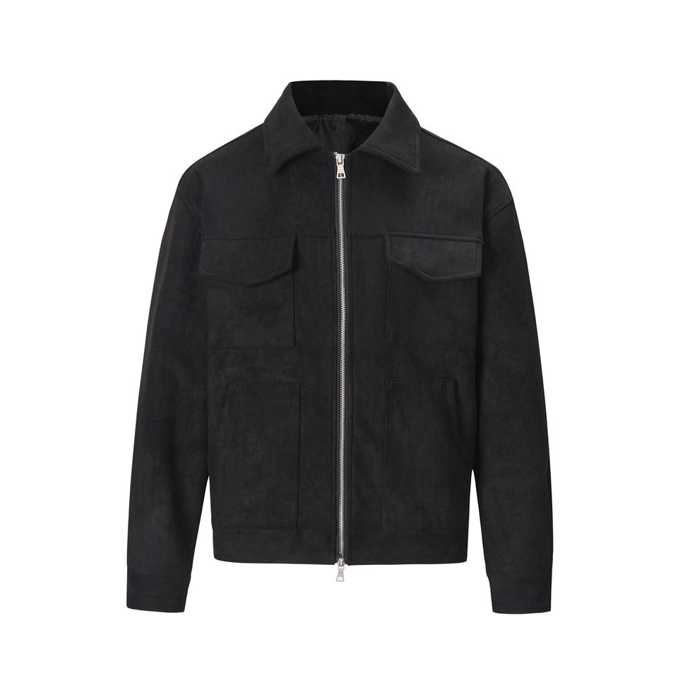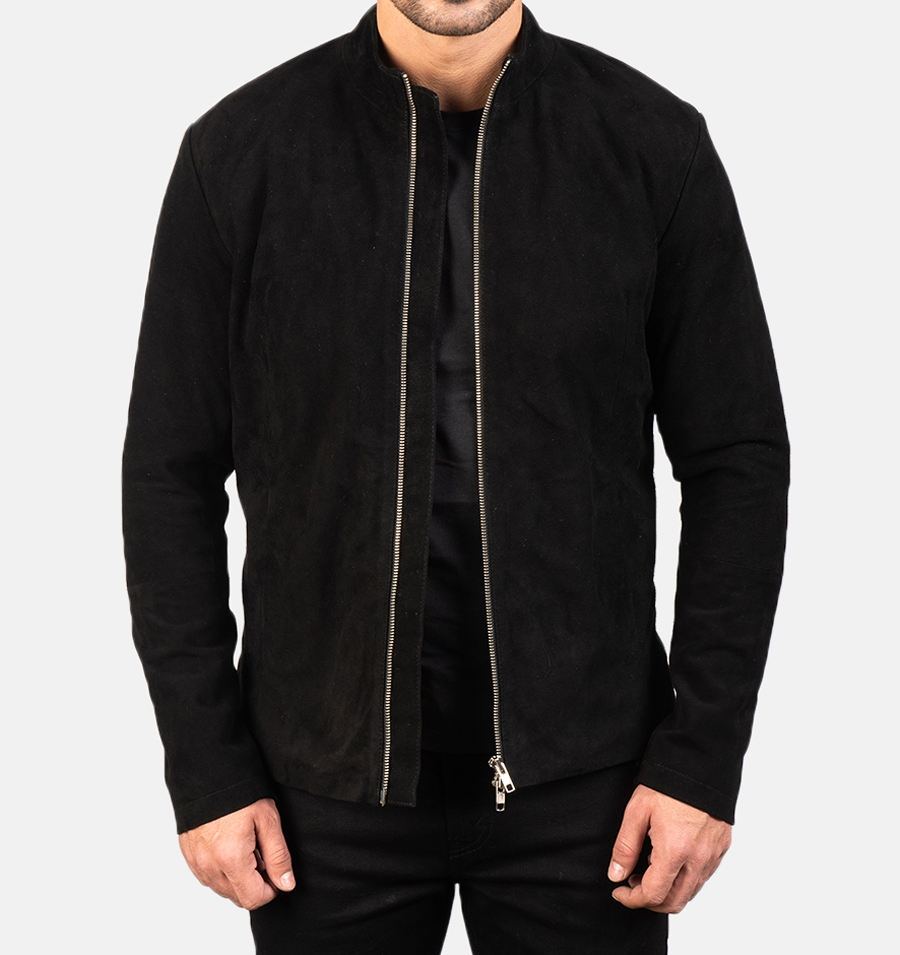 Chaqueta de invierno de cuero de ante para hombre Street Smart Brown con cremallera elegante costuras mínimas y calidez ligera para el día a día