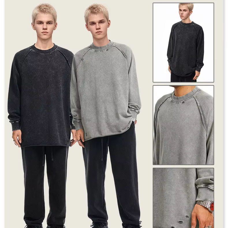 Sudadera Estilo Urbano, Holgada, de Manga Larga con Borde Deshilachado, Desgastada y Lavada, Sudadera con Capucha Holgada para Hombre