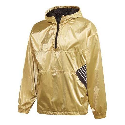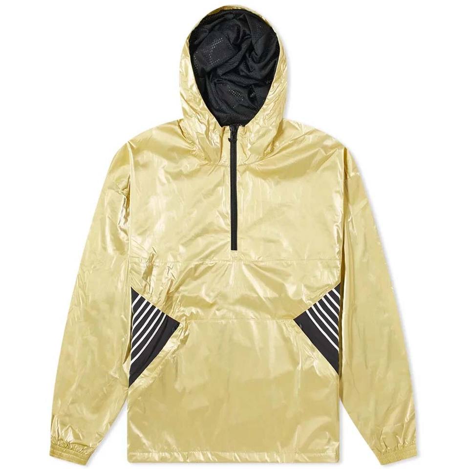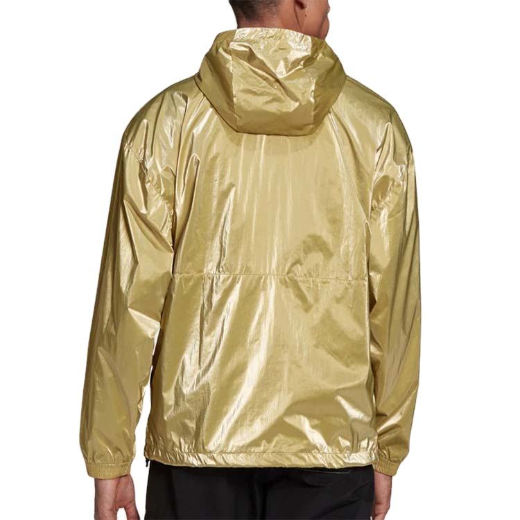 Chaqueta cortavientos de doble cara con capucha y media cremallera, color dorado, diseño exterior personalizado.