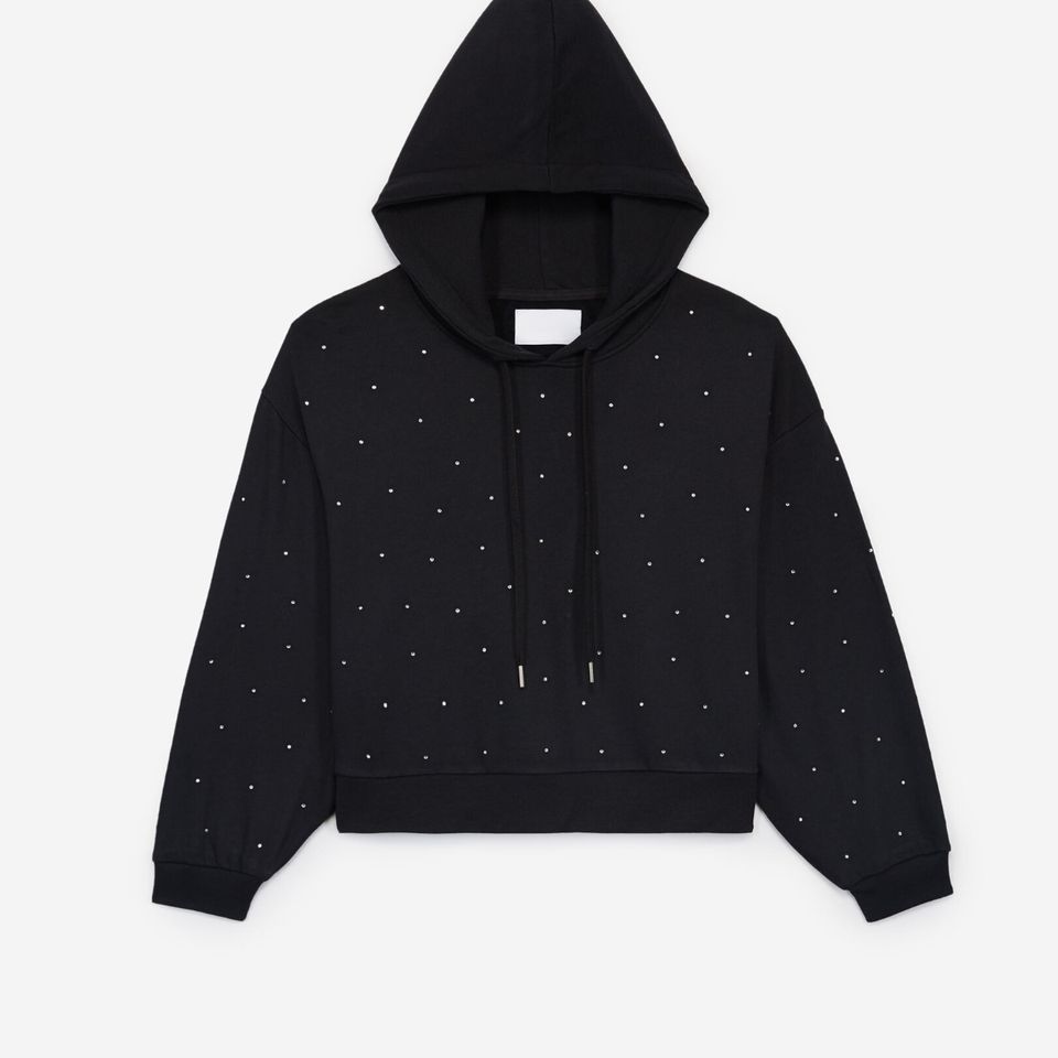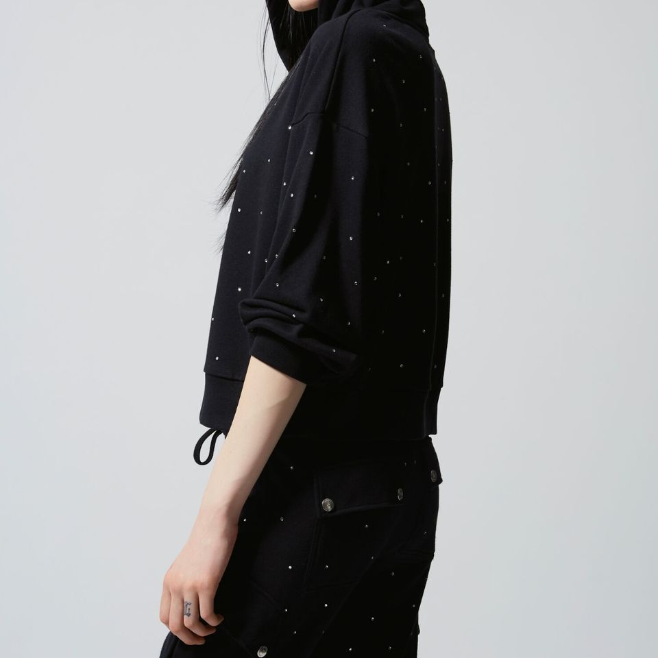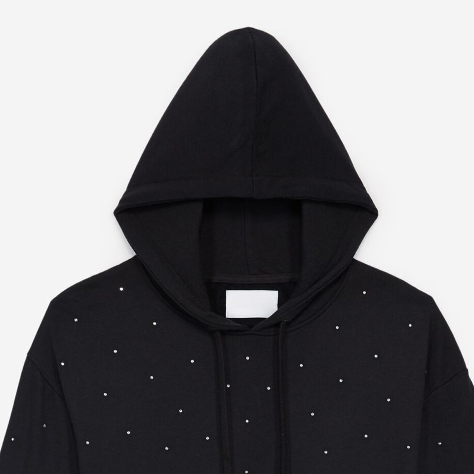 Sudadera con capucha recortada personalizable para hombre, ropa de calle, 100% algodón, apliques desgastados con diamantes de imitación, parche bordado, lavado ácido, Boxy, Invierno