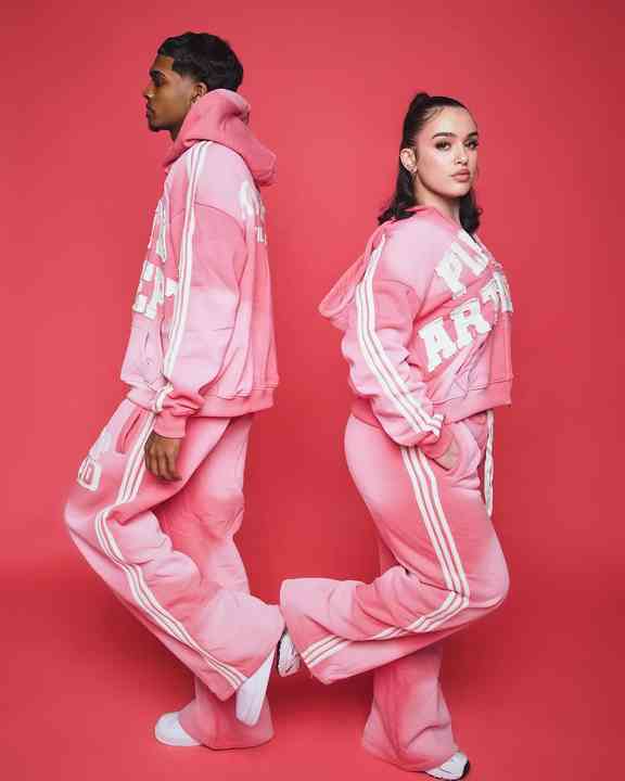 Conjunto Deportivo de Sudadera y Pantalones Deportivos con Lavado Ácido, Estilo Urbano, con Parches Desgastados y Pantalones Deportivos Acampanados
