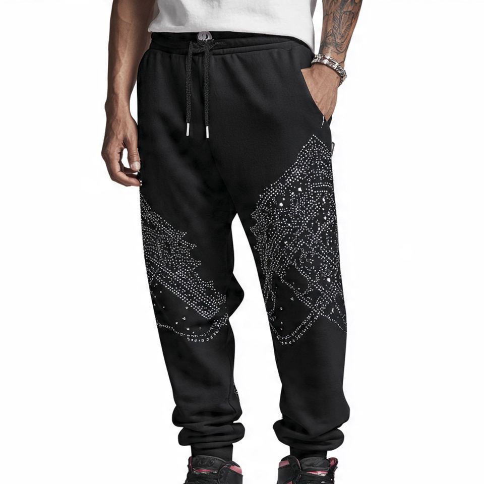 Pantalones Deportivos Holgados para Hombre Estilo Urbano | Pantalones Deportivos Anchos con Pedrería | Pantalón Holgado de Felpa con Lavado Ácido