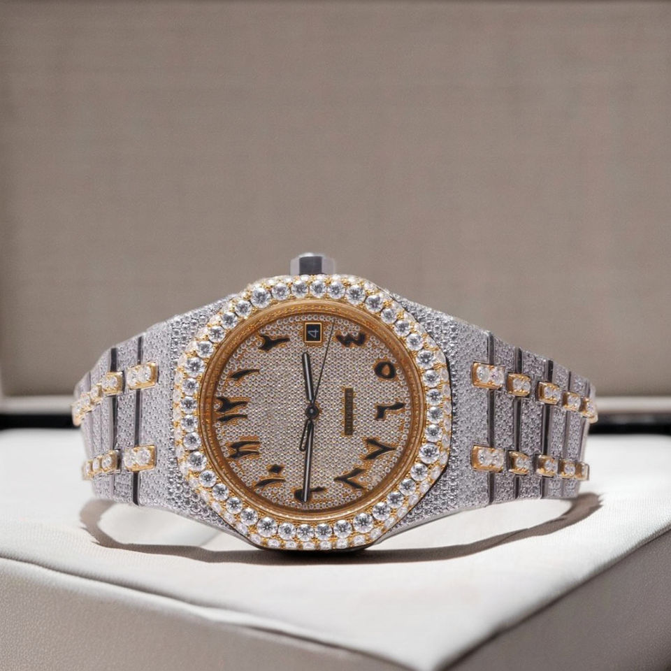 Reloj Moissanite Streetwear-Edición de esfera de números árabes, reloj Moissanite de moda moderna, reloj Moissanite hecho a mano de La India