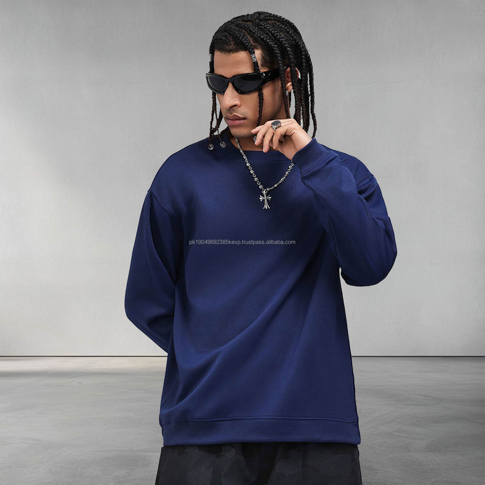 Streetwear cuello redondo 100% poliéster manga larga sudadera hombres peso pesado 330GSM liso en blanco hombres negro sudadera de gran tamaño Retro