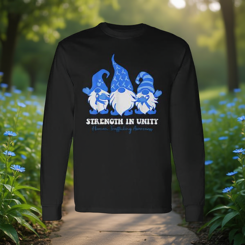Camiseta de manga larga con diseño de Gnomo de la concienciación sobre el tráfico de personas Strength In Unity