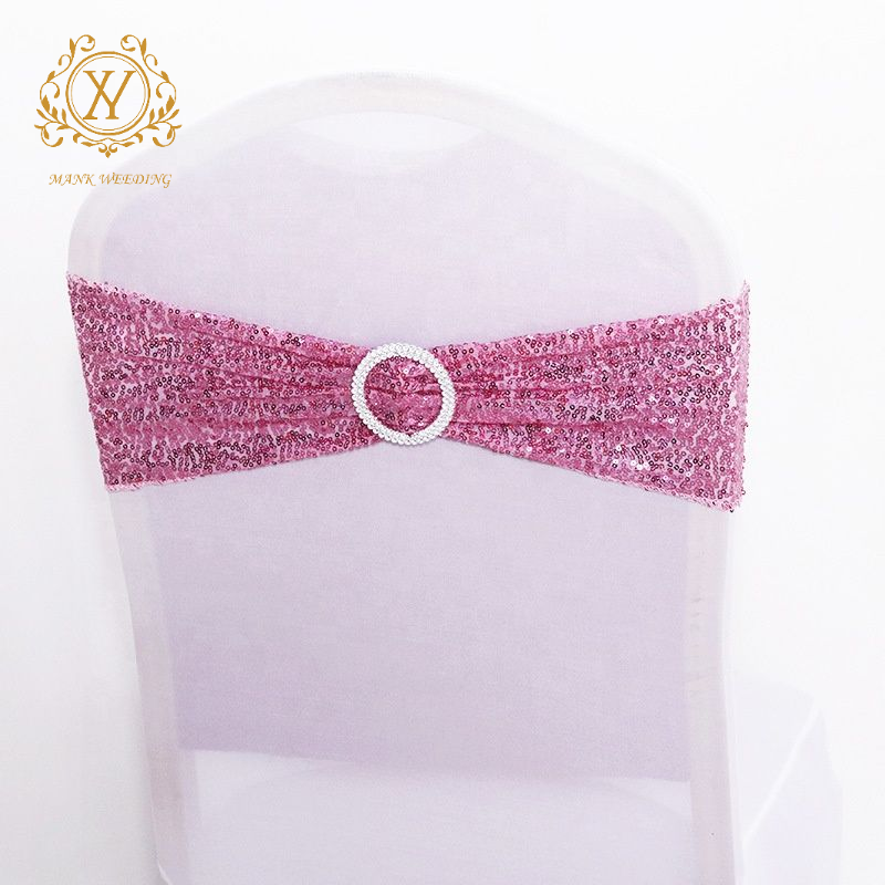 Lentejuelas elásticas silla trasera flor redonda hebilla de diamantes de imitación funda para silla arco silla respaldo Decoración Para Hotel boda banquete