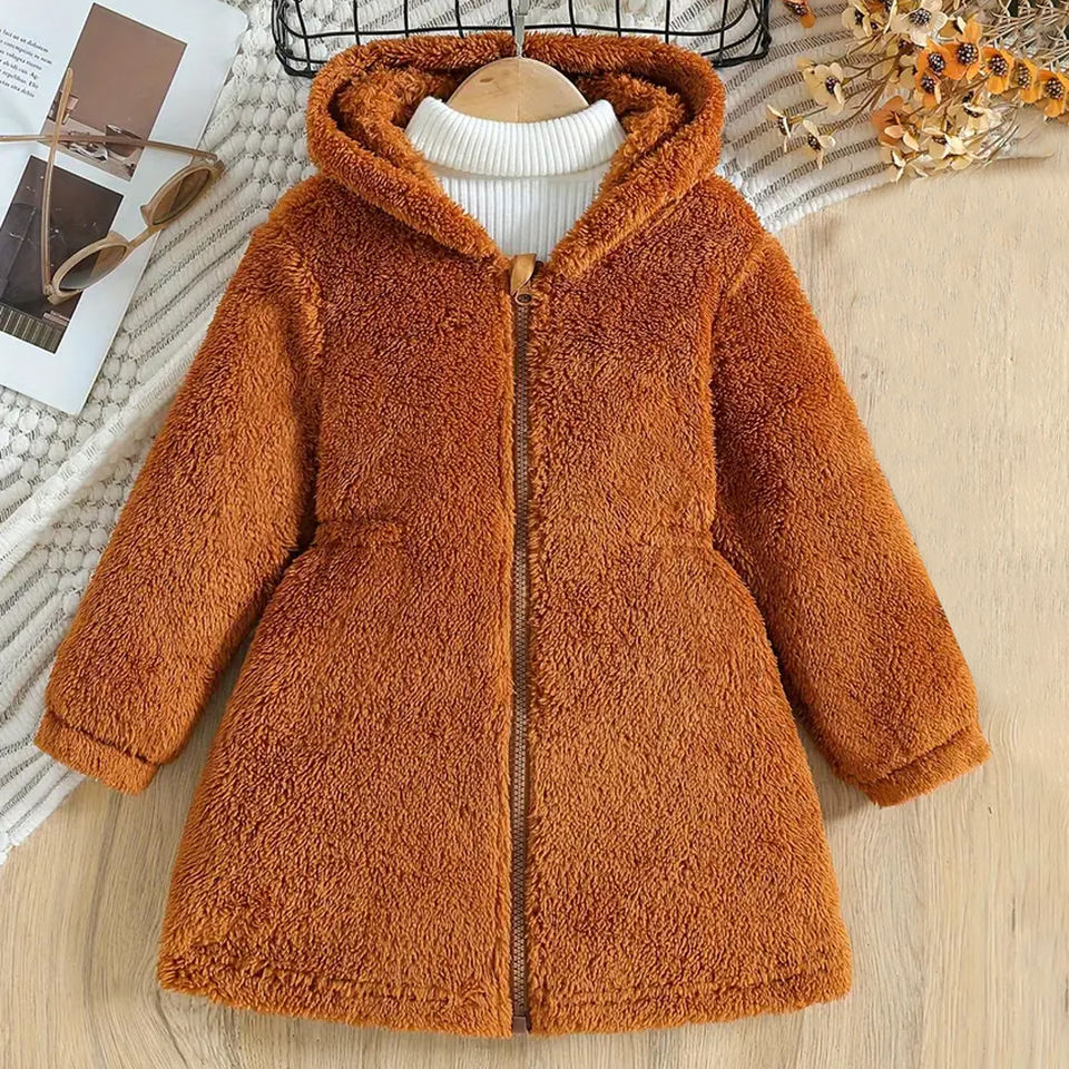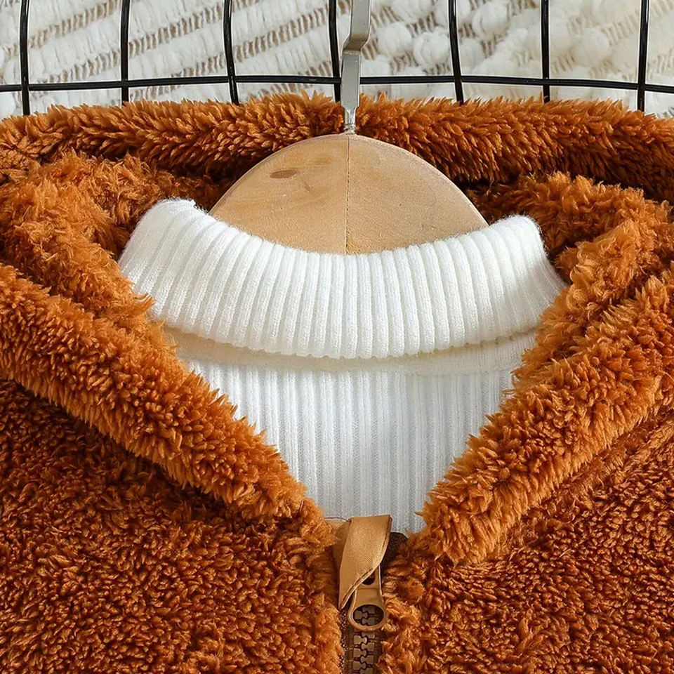 Chaqueta de Lana Elástica con Capucha y Cierre de Cremallera, Diseño de Dibujos Animados, Corte Regular para Otoño e Invierno