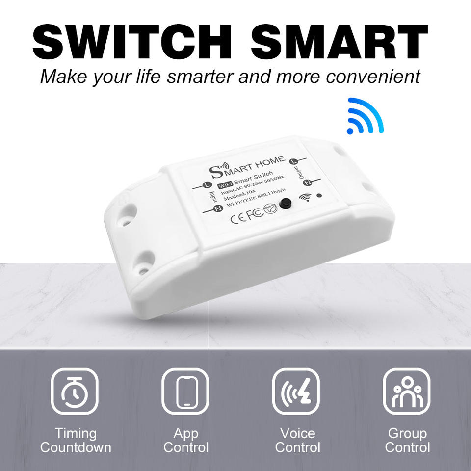 Interruptor Inteligente WiFi, Módulo de Interruptor Inteligente de 10A, Control Remoto por Aplicación Móvil, Temporizador, Interruptor para Luces/Cortinas/Aire Acondicionado para Hogar Inteligente