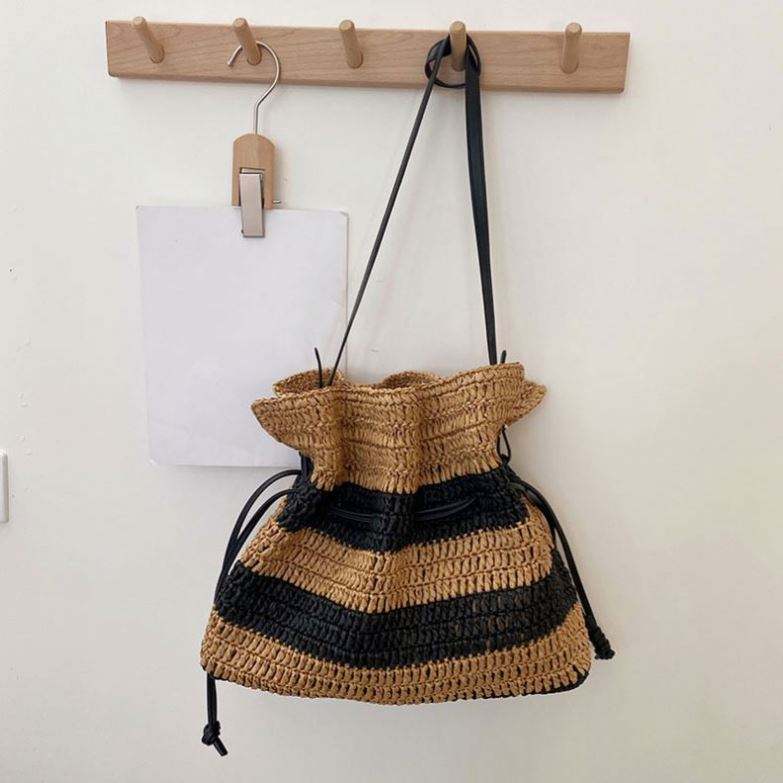 Bolso de playa de paja a rayas, de un solo hombro, estilo bandolera, tejido a mano, para mujer, informal y con estilo.
