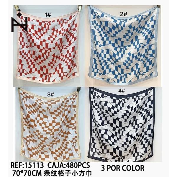 Pañuelo Cuadrado Pequeño a Cuadros y Rayas 70x70cm, Accesorio de Moda para Mujer