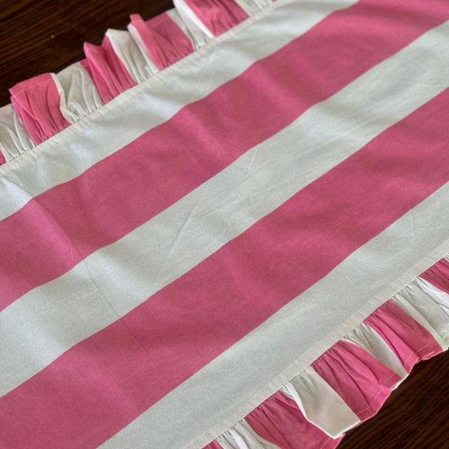 Camino de mesa de algodón a rayas con volantes, rosa y blanco, decoración decorativa para mesa de comedor