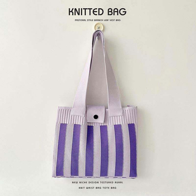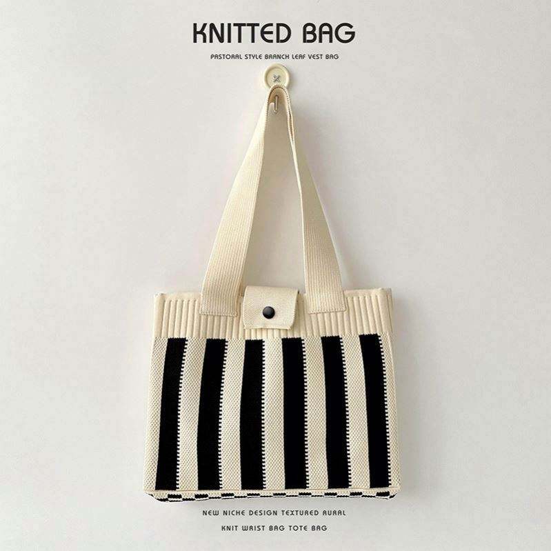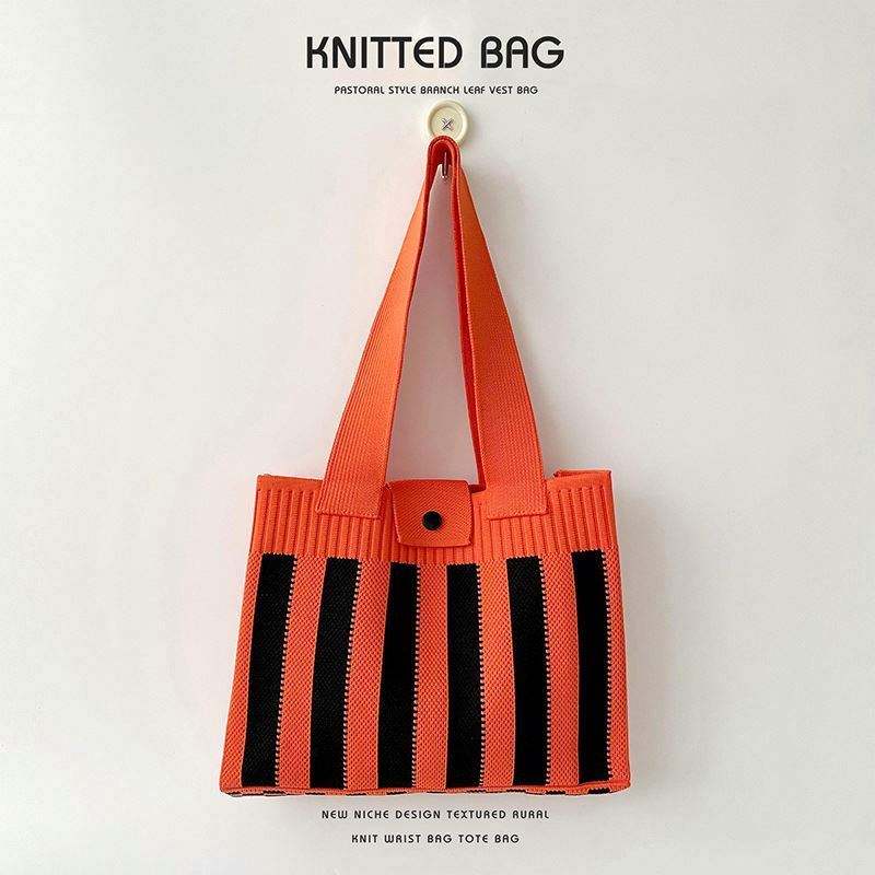 Bolso de Hombro Tejido con Diseño a Rayas, Bolso Tote Tejido Versátil para Llevar Bajo el Brazo, Bolso Tejido de Gran Capacidad para Mujer