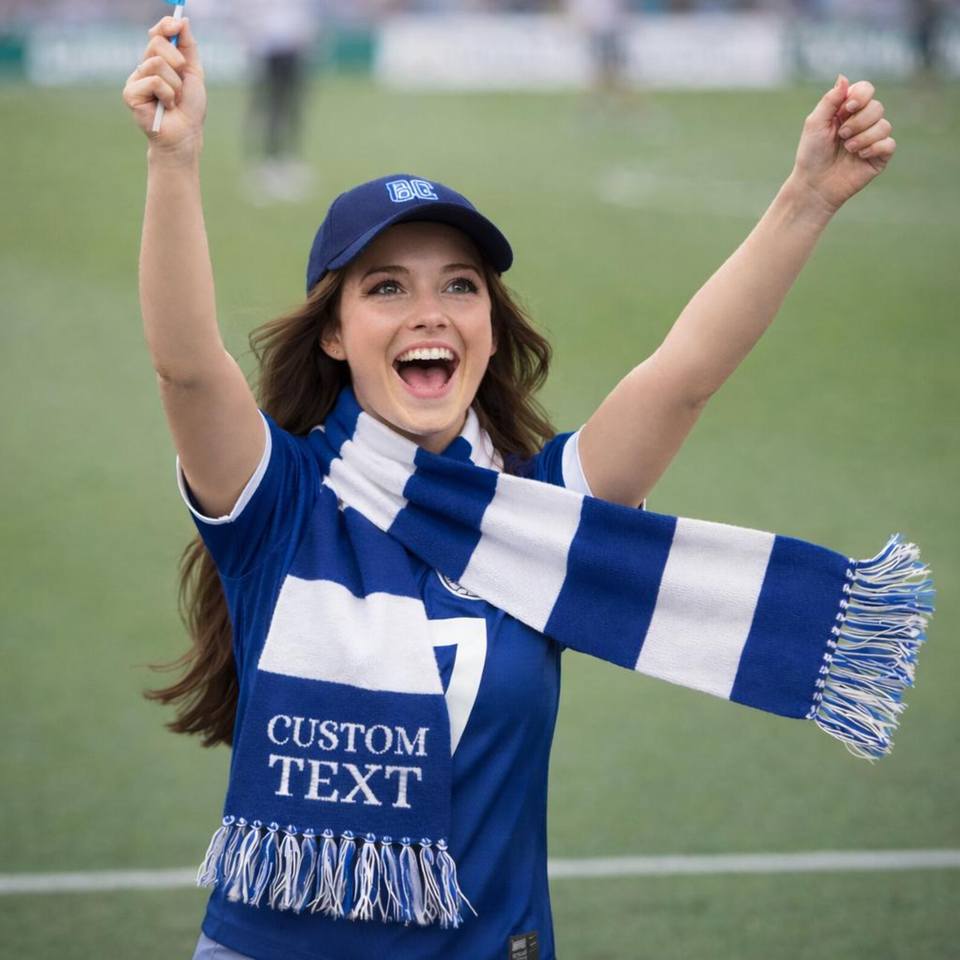 Bufanda a Rayas para Espectadores, Colores del Equipo, Texto Personalizado, Bufanda Tejida para Aficionados, Accesorio para Estadio