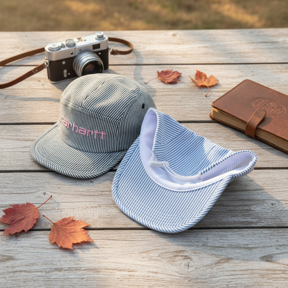Gorra de Béisbol de 6 Paneles con Bordado a Rayas, Visera Plana, Ajustable, de Algodón y Poliéster, para Hombre y Mujer, para las Cuatro Estaciones
