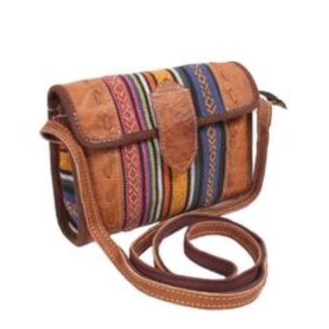 Bolso de hombro de algodón de rayas multicolores:Con combinación de cuero crudo