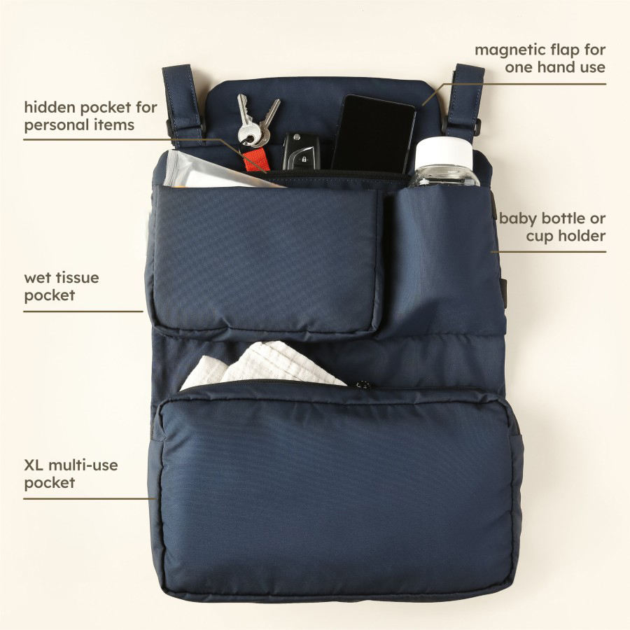 Organizador de cochecito, bolsa colgante, organizador de asiento trasero de coche, protectores de respaldo, alfombrillas para niños pequeños, organizador portátil para colgar pañales
