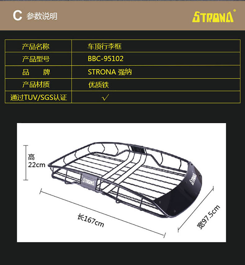 Canasta de Carga para Techo de Acero Suave Strona de Alta Capacidad de Carga 75 kg 1560x975x220 mm