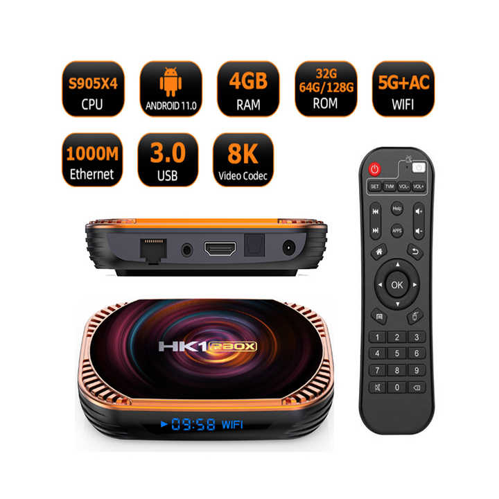 Potente TV Box Android 11 8K HK1 RBOX X4, Set Top Box 4G 32G 64G 128G, 1000M Lan, Amlogic S905X4, Reproductor Multimedia con WiFi Dual 5G, Gran Éxito en Europa