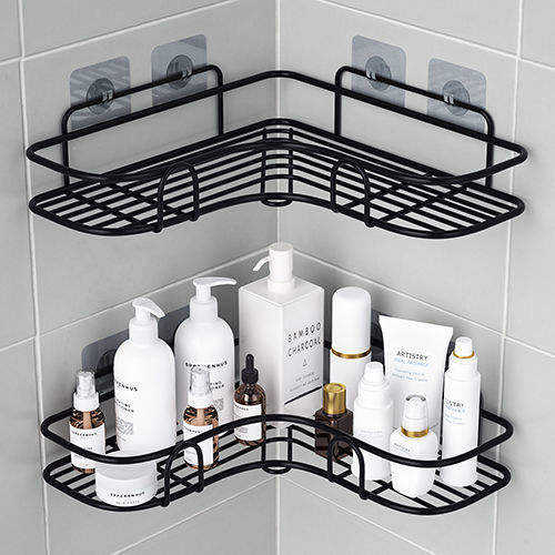 Estante de Esquina Metálico con Adhesivo Fuerte, Estante Triangular de Hierro para Baño, Sin Perforaciones