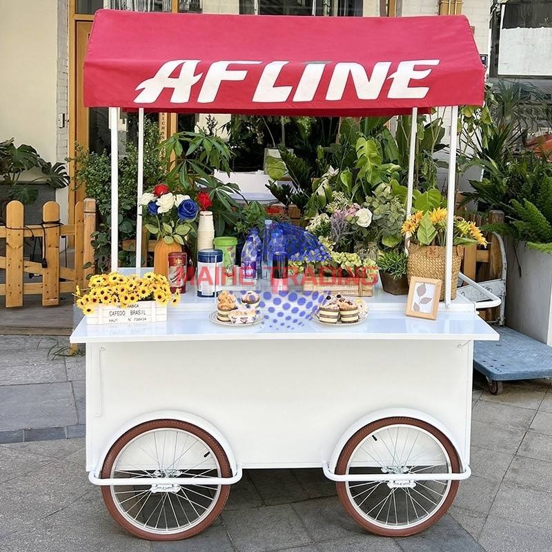 Carrito de Helados Móvil de Estilo Romántico para Venta Rápida de Gelato y Churros con Gran Capacidad de Enfriamiento